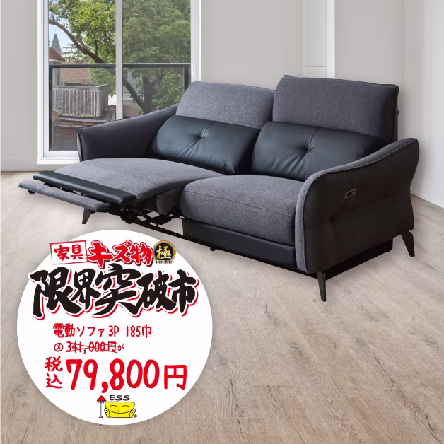 【185巾3P電動ソファ】㋱341,000円が税込79,800円です。