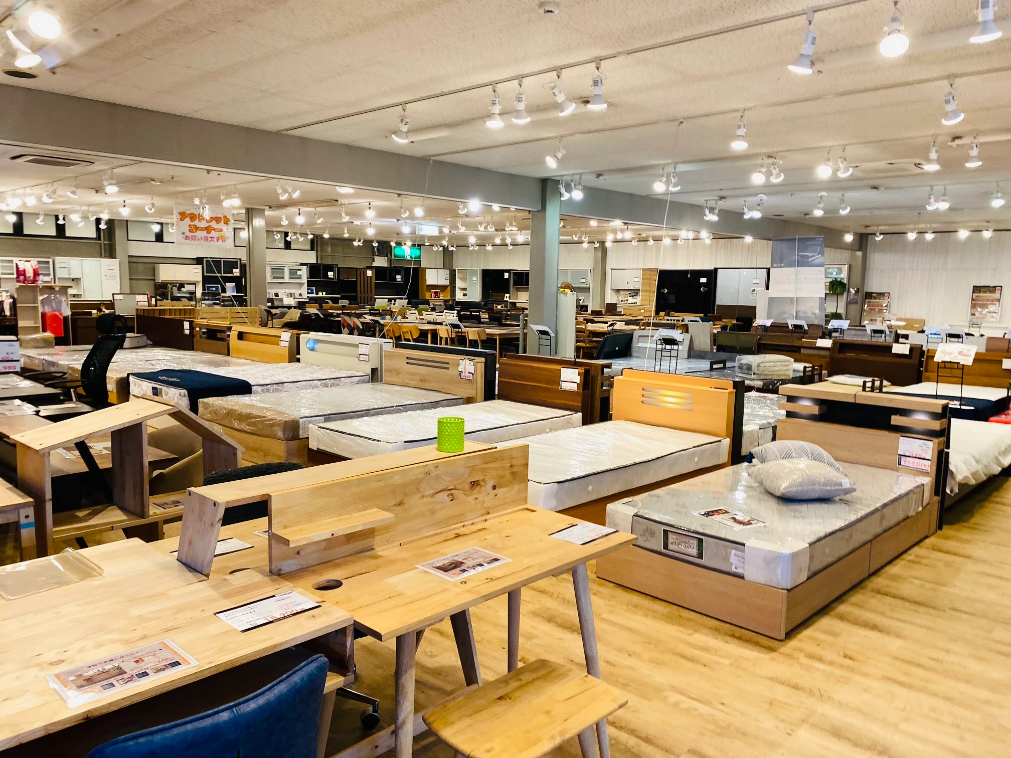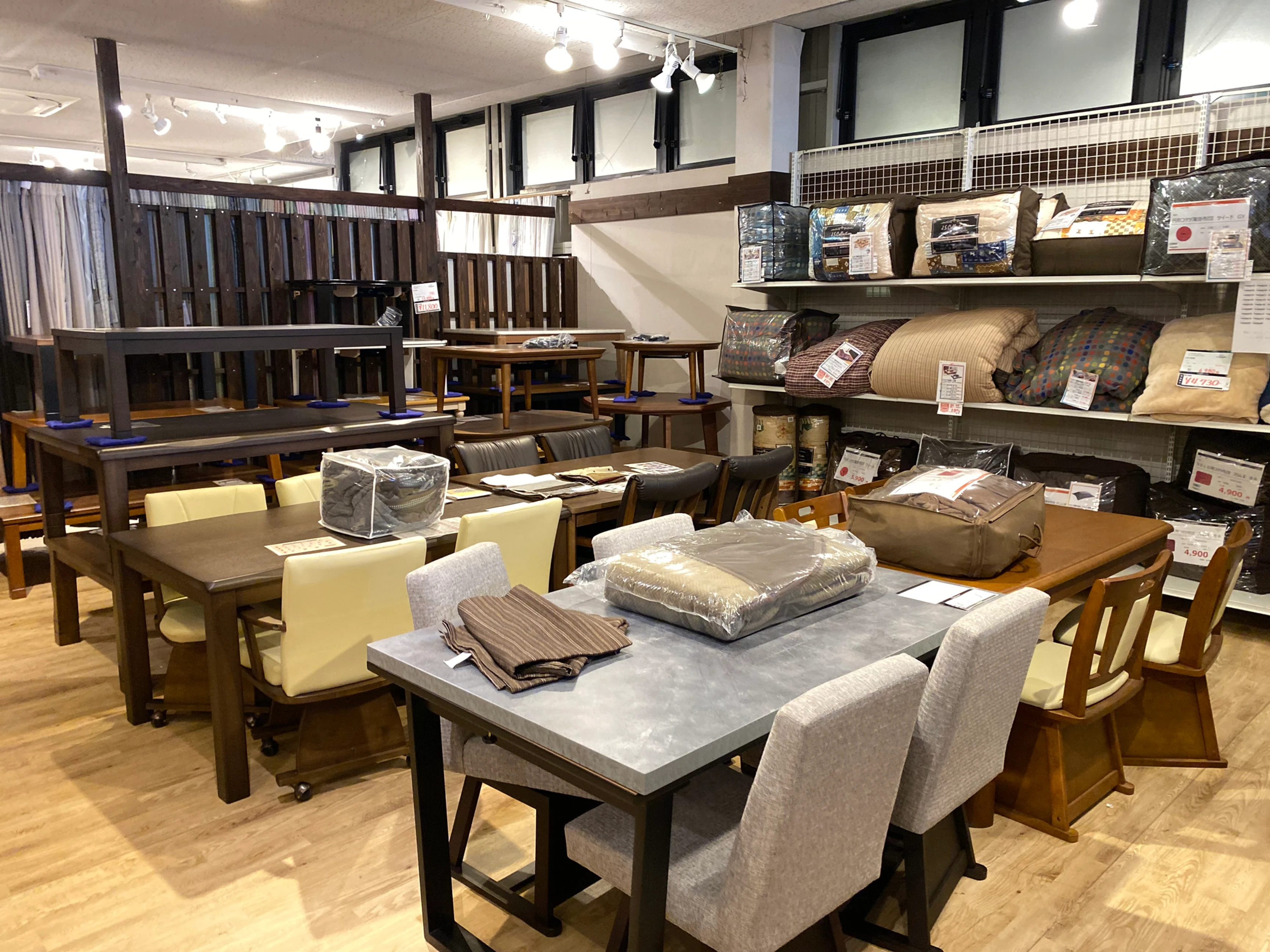 直方店2Fベッド・コタツ・食器棚・デスク・書棚・整理タンス・シューズBOX・カーテン・ダイニングテーブル