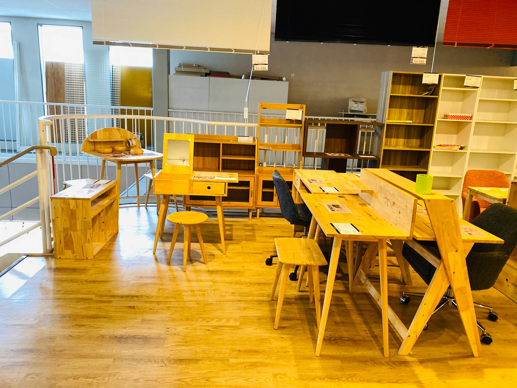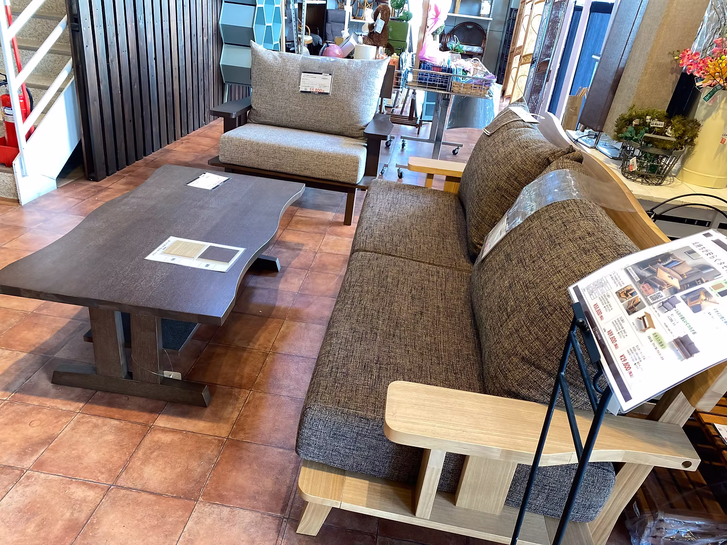 お客様組立のナチュラルシリーズは階段登ってスグのところにあります。