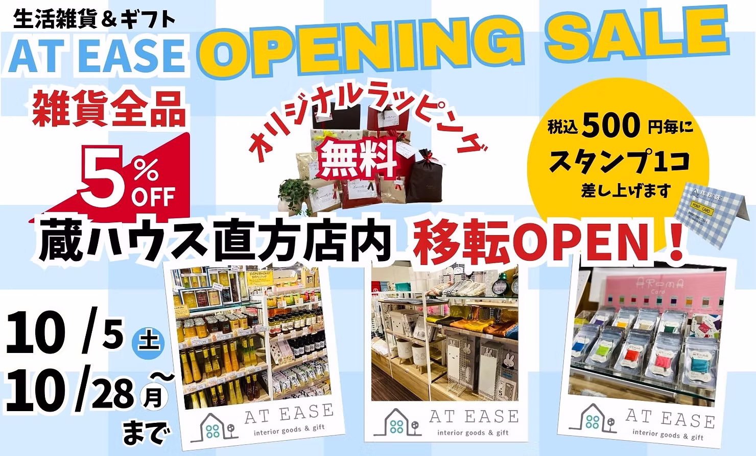 蔵ハウス八幡西店で併設していた生活雑貨のお店AT EASEか直方店に!