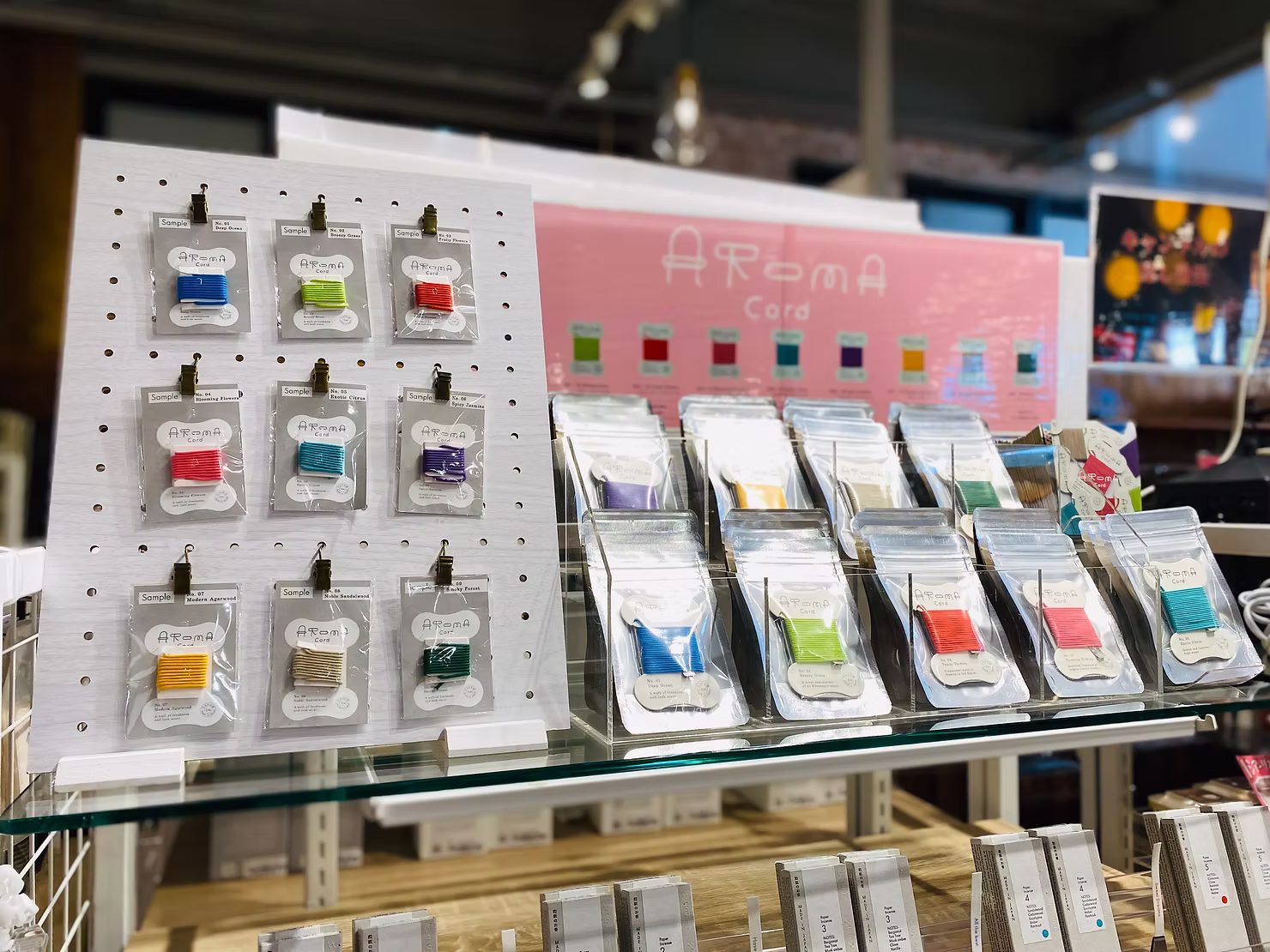 これは新入荷のお香です。糸タイプのお香って初めて見ました。左側のミニサイズはテスターなので、香りを確かめる事ができます。