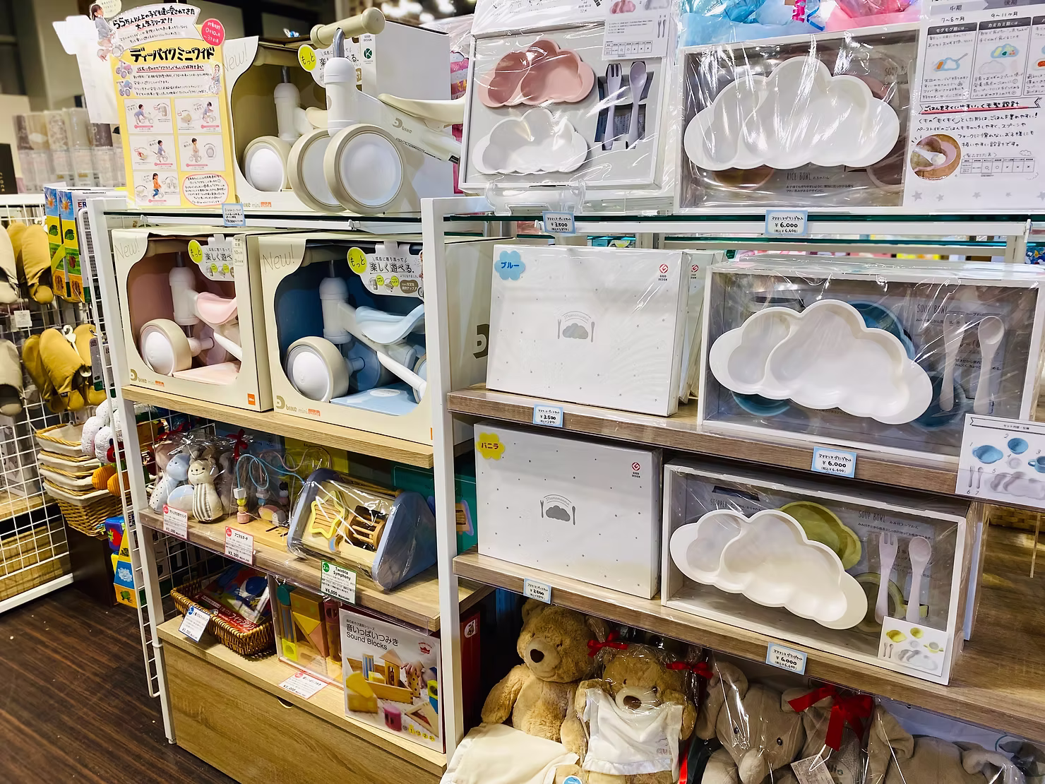 1F雑貨レジ横には、キッズスペースも新たにできましたので、お子様連れのお客様は、是非ご利用くださいませ
