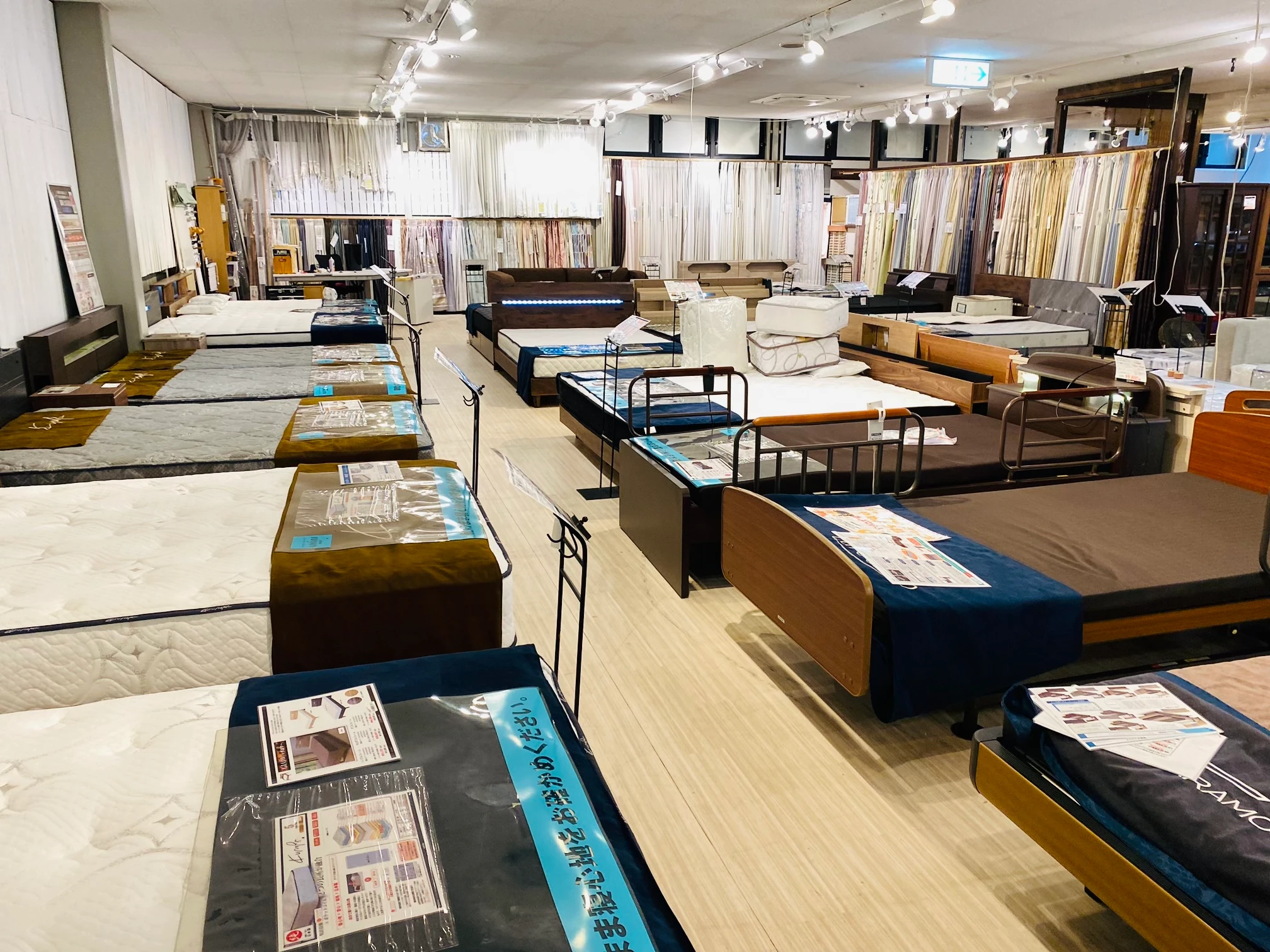 ベッドは、2F中央に様々な種類のベッドを数多く展示しています。