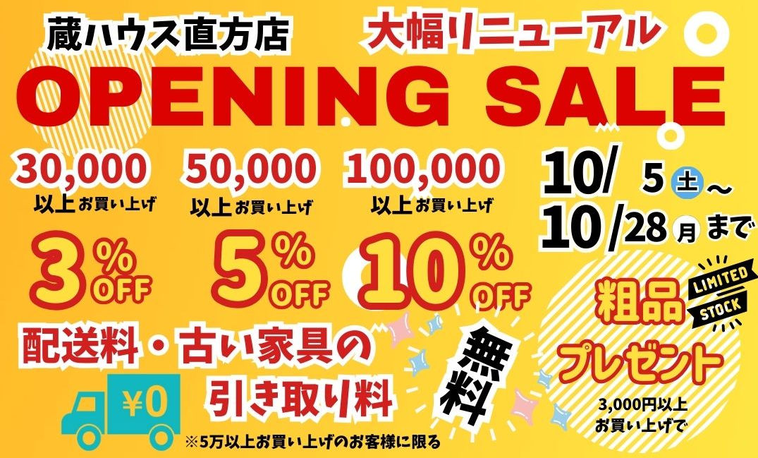 蔵ハウス直方店にて、大幅リニューアルオープニングSAILを開催致します!