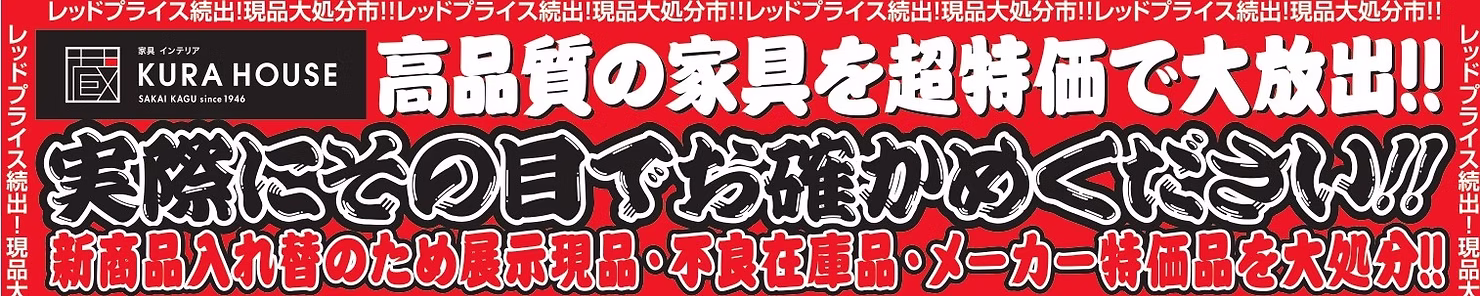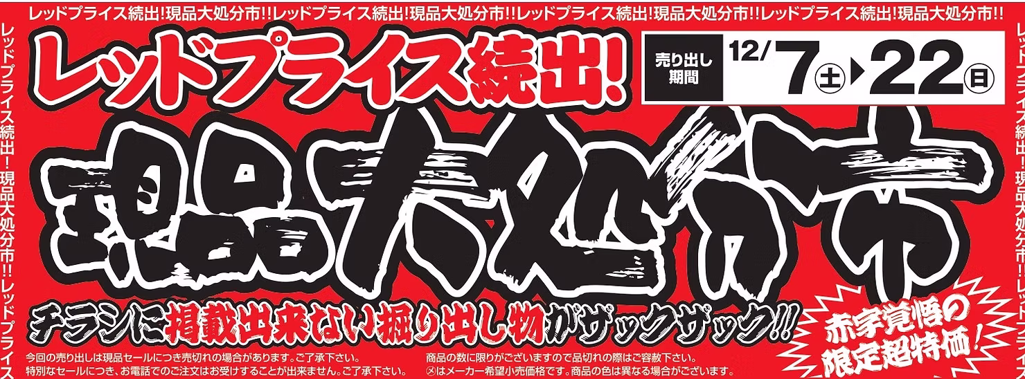 新商品入れ替えのため展示現品・不良在庫品・メーカー特価品を大処分!
