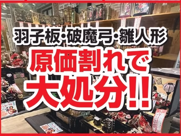 羽子板・破魔弓・ひな人形も原価割れで大処分致します!