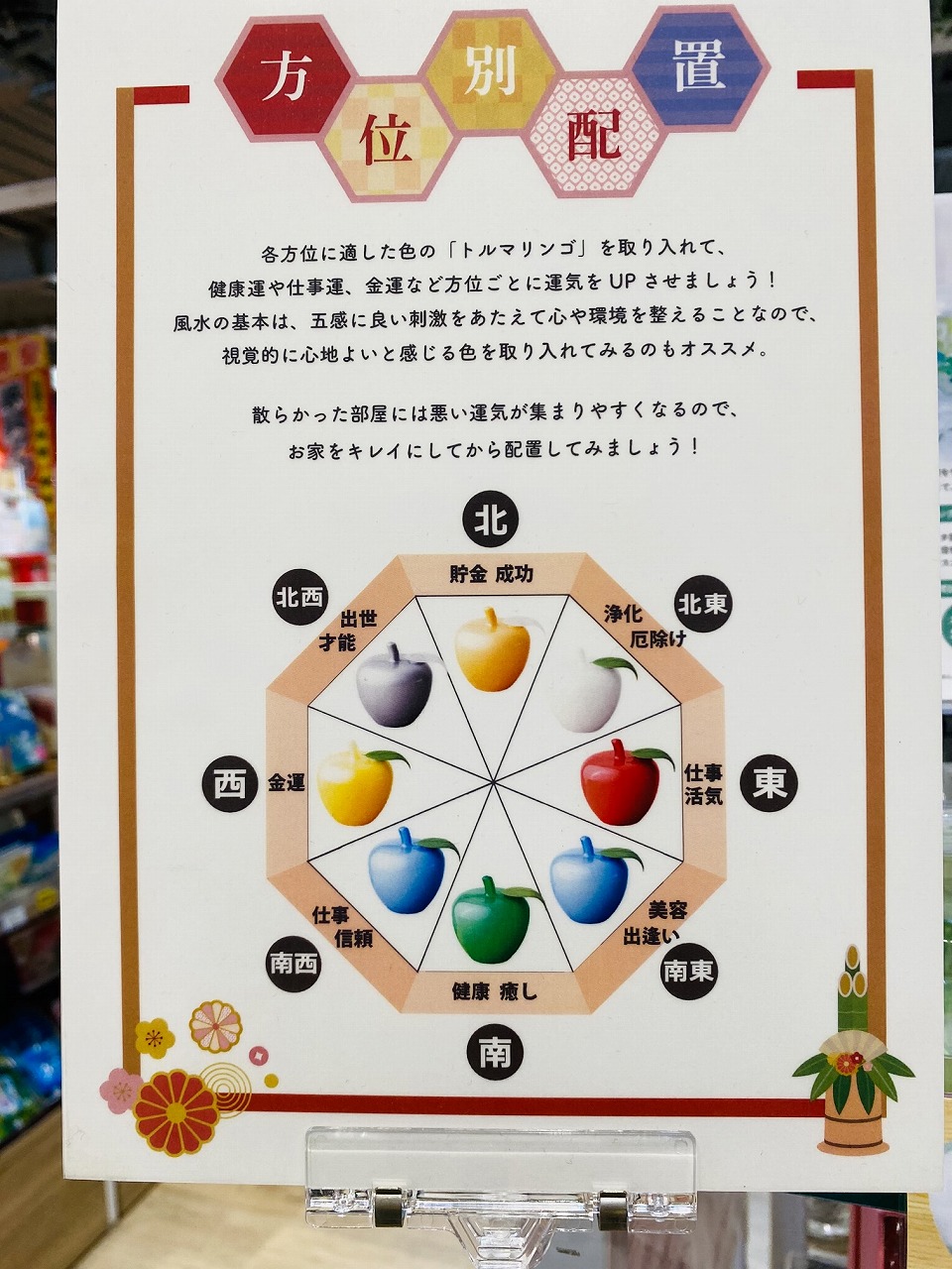 風水では、色と方位にはそれぞれ意味があるとされています。 「トルマリンゴ」をお部屋に置く時、色や方角を意識するとさらに楽しみ方が広がります^^