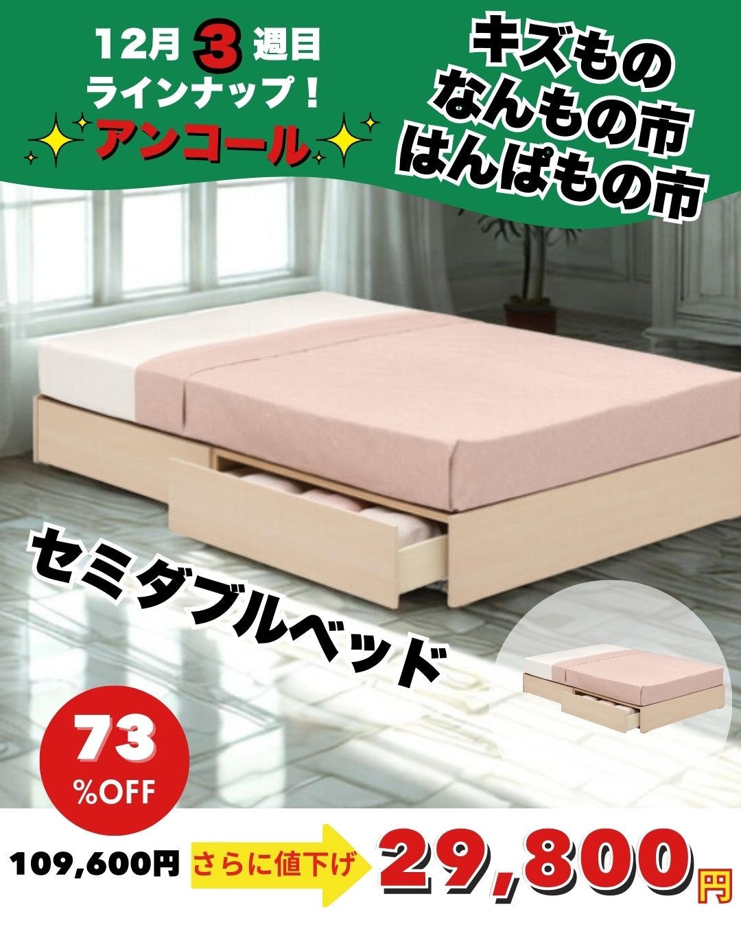 セミダブルベッド ㋱138,000円→39,800円