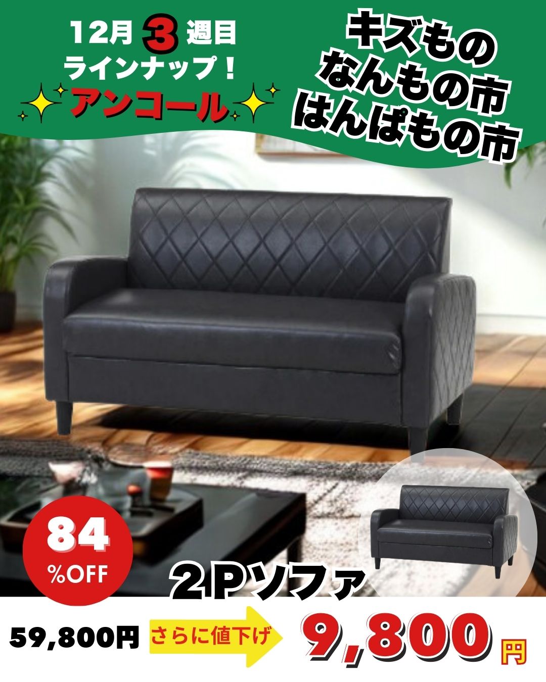 3Pソファ ㋱99,800円→29,800円