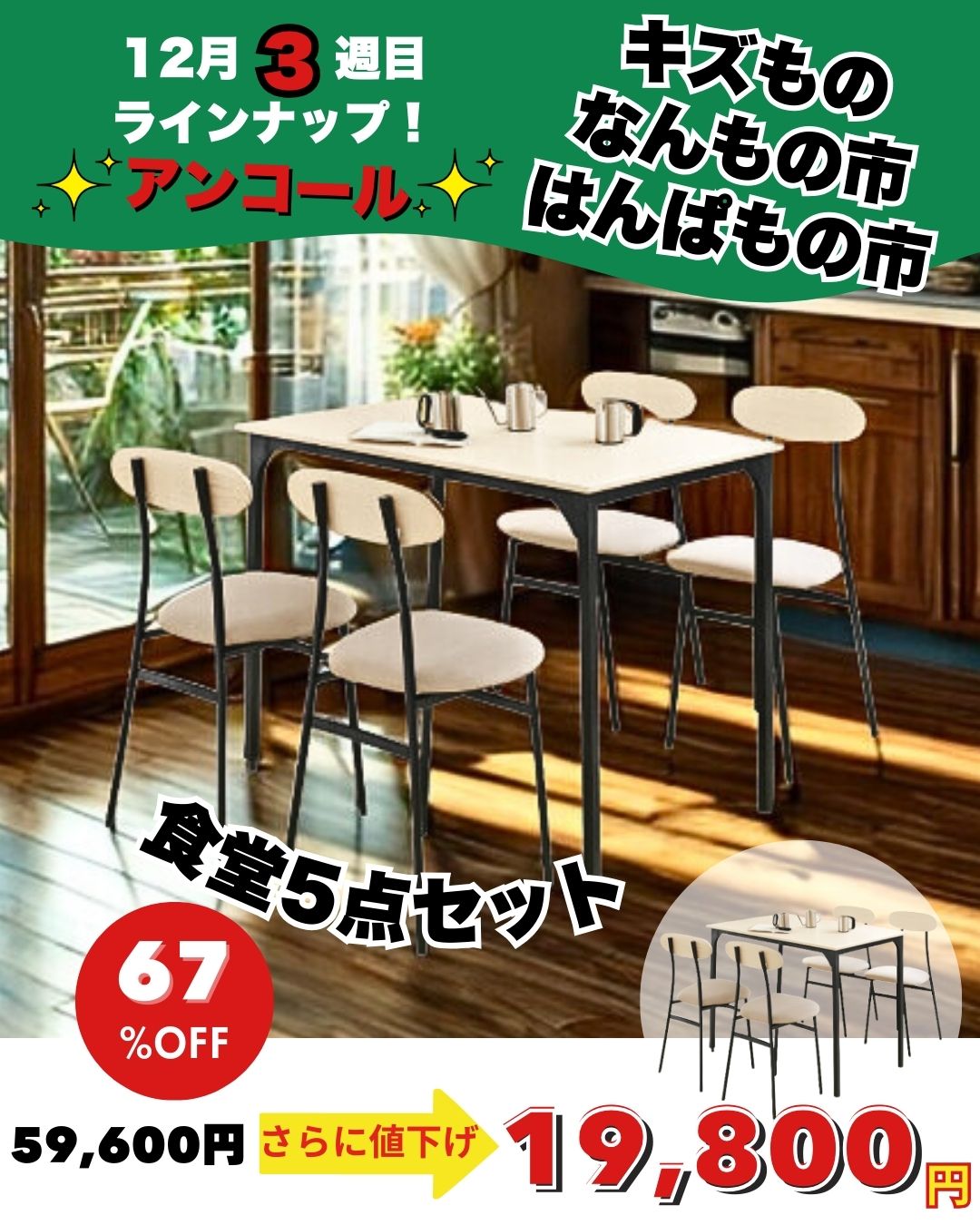 120巾食堂5点セット ㋱79,600円→29,800円