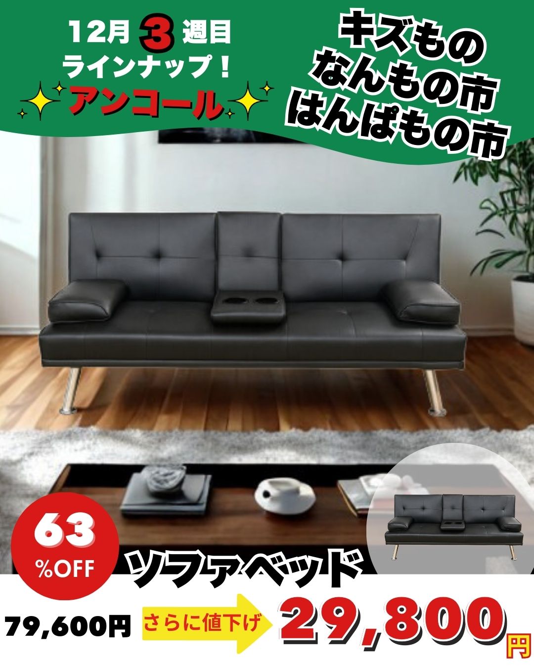 ソファベッド ㋱84,700円→39,800円