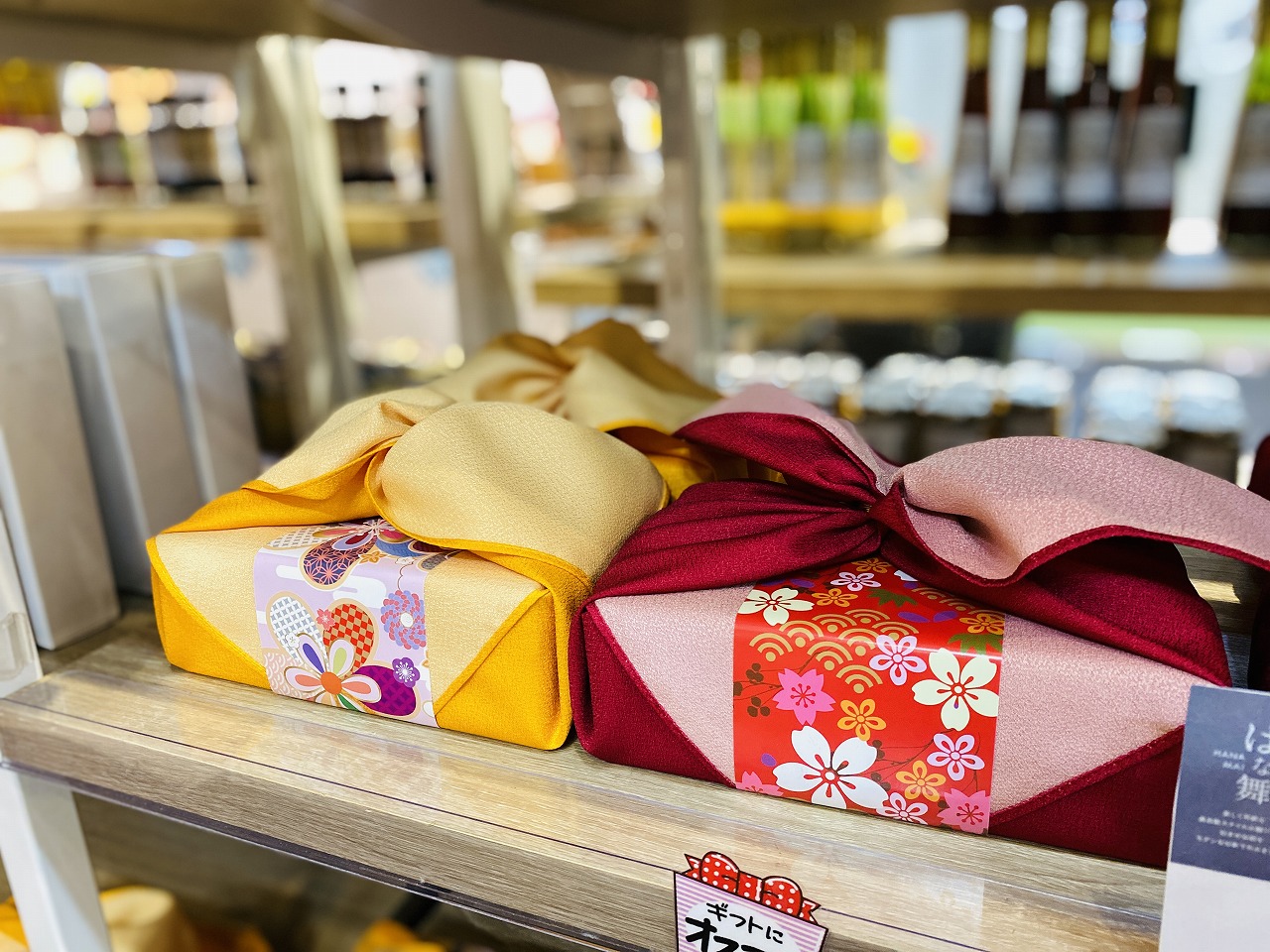 中身は出汁やかつお節といった実用性の高い食品。 持ち運びしやすい軽さでありながら、 ふろしき包みの華やかな見た目が、 贈り物としての特別感をしっかり演出してくれます。